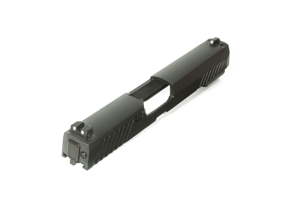 This slide is equipped with our standard night sights.