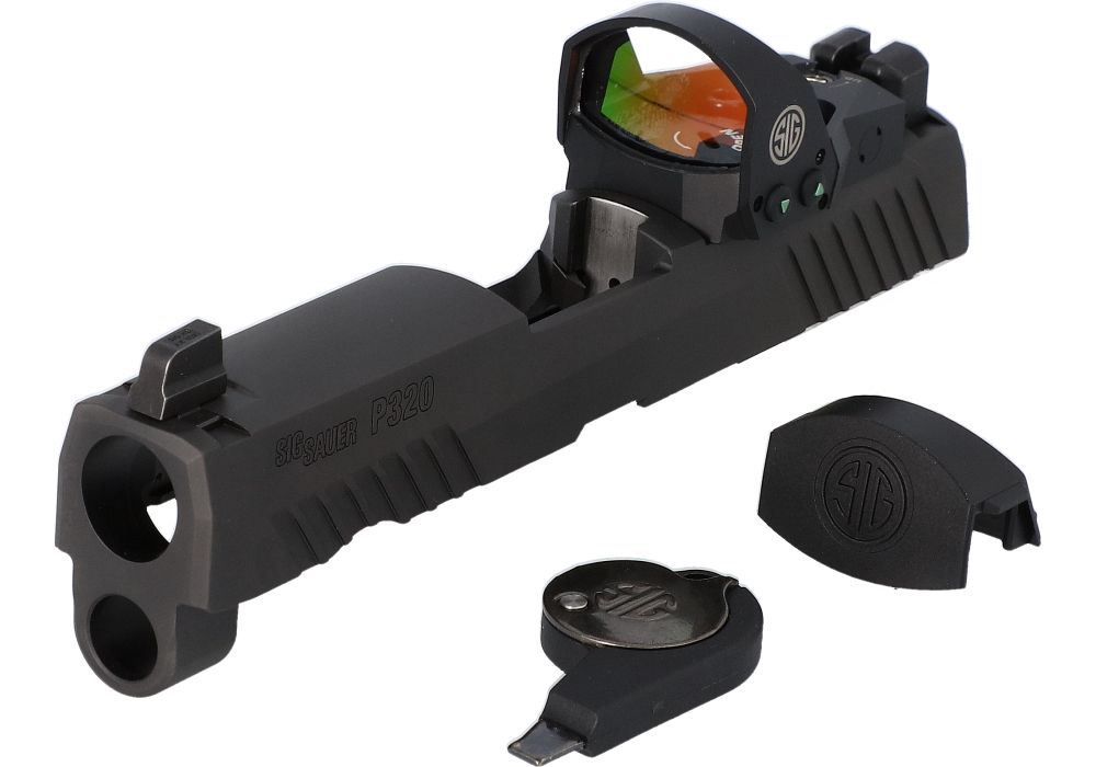 Upgrade your SIG Sauer P320 with this factory replacement RX slide assembly, precision-engineered from stainless steel and finished in sleek black. Designed to fit Carry and Compact grip modules (X and non-X), this slide accommodates a 3.9” 9mm barrel and is ready for action with a direct-mounted ROMEO1 reflex sight and suppressor-height XRAY3 Day/Night sights for absolute co-witness.